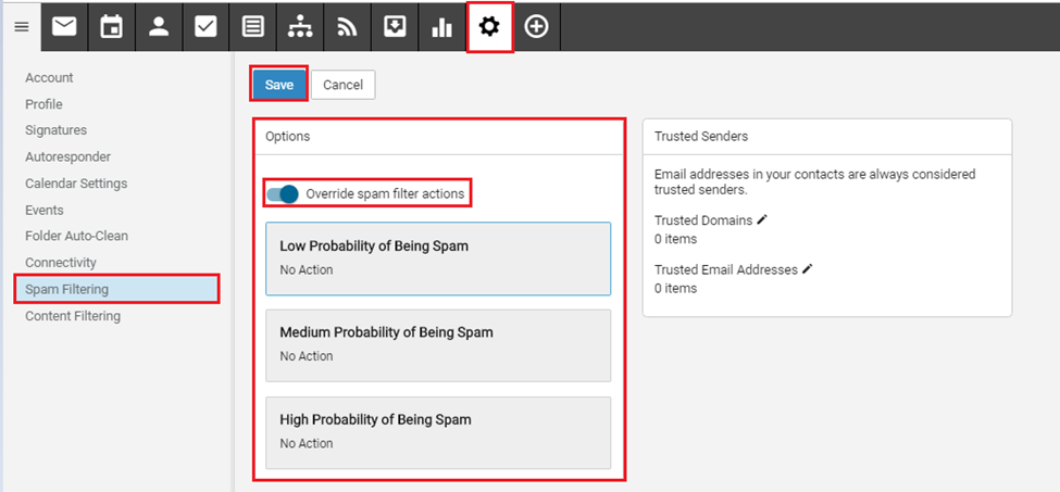 Once you’ve made your selections, click Save to apply the custom spam filtering settings to your email account.
